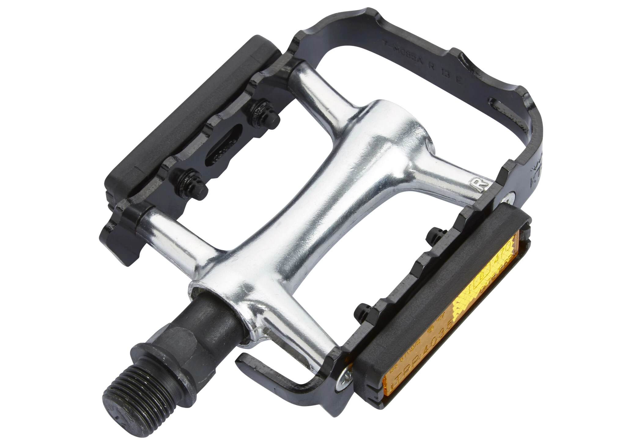 Den skridsikre aluminiumspedal med lejer af høj kvalitet er monteret på en Cr-Mo-aksel. Reflektorerne er inkluderet.