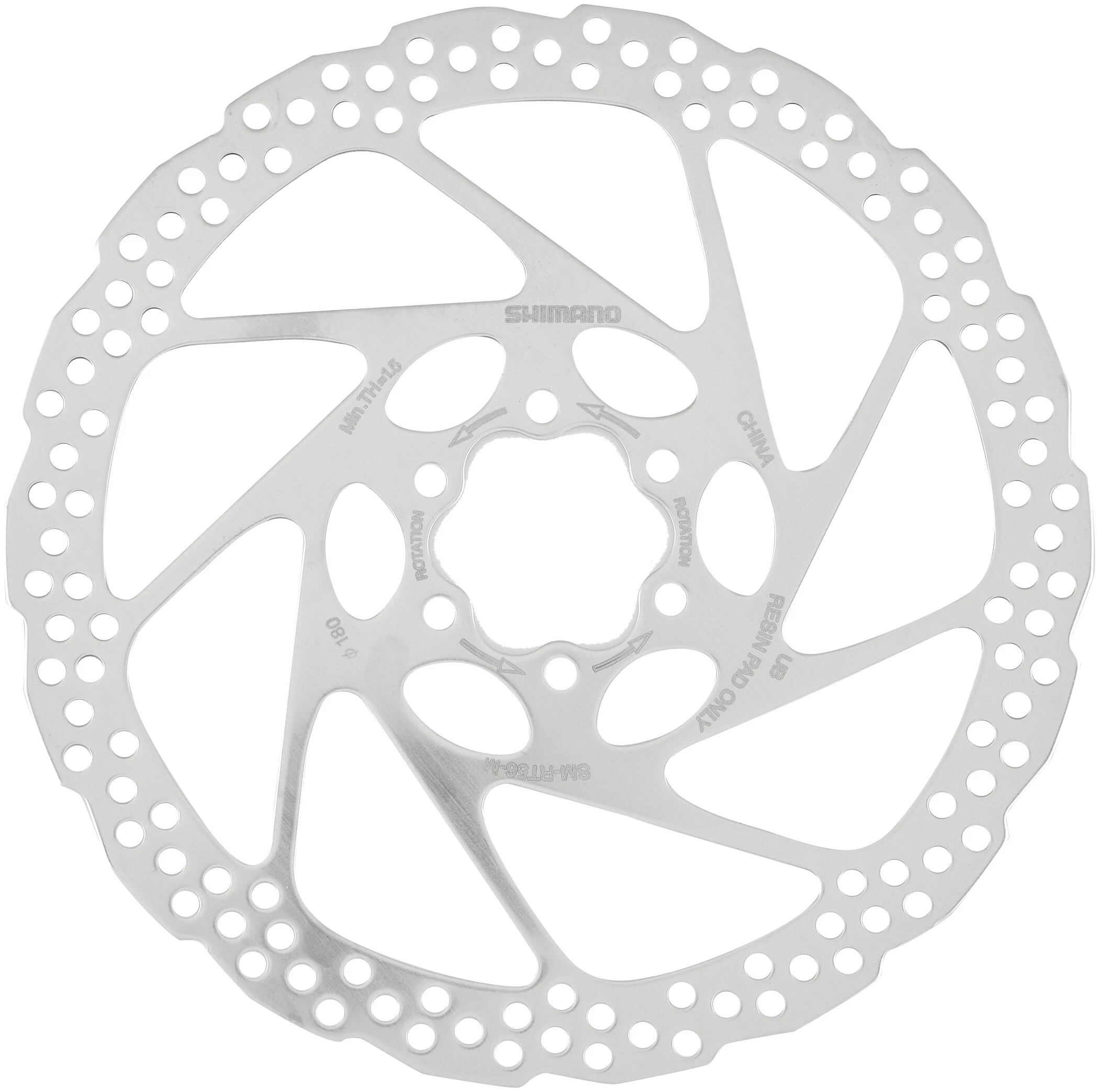 SHIMANO SM-RT56 6-hullers bremseskiver sikrer en konstant bremseevne under alle forhold. Takket være det nye design med monteringsplader kan bremseskiven monteres sikkert og hurtigt.